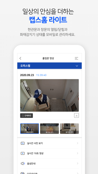 - 캡스홈 라이트: 침입 감지 및 출동요청, 현관, 창문 열림/닫힘 관리, 실시간 화재감지로 빠른 초동대처, 범죄예방부터 사후보상까지 토탈케어