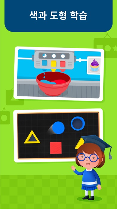 11. 색상과 도형을 이용한 여러 미술 게임과 리듬, 동요 등을 배우는 음악 게임도 제공됩니다.