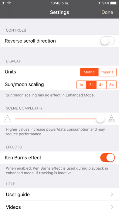- Key features include 3D topographic maps, continuous timeline showing key rise, set and transit events, full search capability, automated playback, flying mode, enhanced mode, symbolic representation of the Milky Way, direct elevation control for the 3D model camera, camera pitch and bearing indicators, and more.