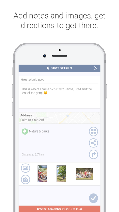 5. ◦ Use your camera or your photo library to add images to your spots.