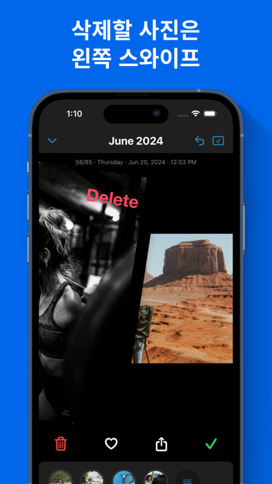 2. 사진, 비디오 등을 빠르게 훑어보고 간단한 스와이프로 보관할지 삭제할지 결정할 수 있습니다.
