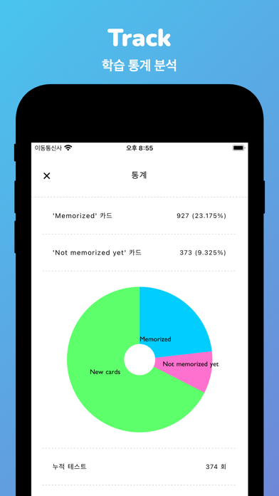 8. -또한 이미 암기한 단어를 잊지 않도록, 이 과학적인 알고리즘이 적절한 시점에 단어의 복습을 권하게 됩니다.
