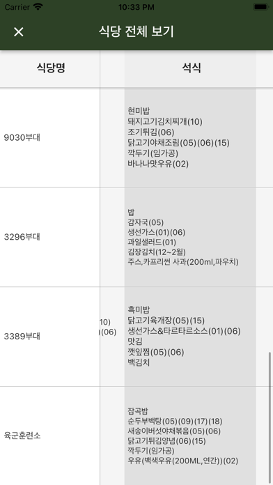 군대 식단표 은 무료 Food & Drink 앱으로 youngchill Kim 에서 개발했습니다. 1 년 전 출시되었으며 17+ 연령에만 적합하며 파일 크기는 42.13 MB. 군대 식단표를 쉽게 보는 앱입니다 우리 부대 식단이 뭔지 궁금하면 한눈에 전체 식단에서 보고 선택할수있습니다 정부 OPENAPI를 사용해서 매달 업데이트 하고 있습니다 앱을 켜면 급양부대를 선택하시면 됩니다 한번만 선택하시면 그다음부터는 오늘 현재 시간의 식단을 바로 볼수있습니다 앞으로 공군, 해군도 추가할수 있도록 최선을 다하겠습니다. 현재 버전은 v9.9.5 이며 18 사람들 이상의 2/5 점을 받았습니다.