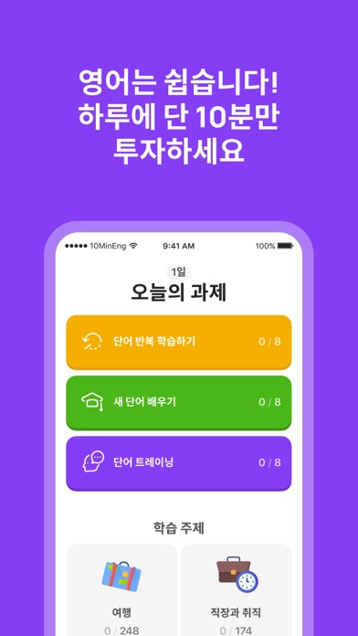 2. 10 Minute English 앱을 사용하면 한 달에 500개 이상의 새로운 단어를 매달 익혀 언어를 말하고 이해하는 능력을 향상할 수 있습니다.