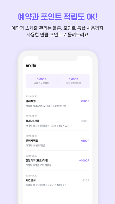 - 다양한 상품 : 1회 이용권, 회차권, 기간권, 체험권, 패키지 상품 제공