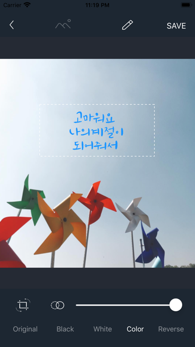 3. 본인의 필사, 캘리그라피를 사진에 입혀, 감성 넘치는 멋진 작품을 만들어보세요.