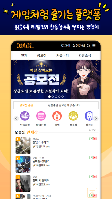 와글 은 무료 Book 앱으로 (주)아이피프라임 에서 개발했습니다. 2 년 전 출시되었으며 4+ 연령에만 적합하며 파일 크기는 29.23 MB. 게임처럼 즐기는 콘텐츠 플랫폼 읽지 않아도 즐거운 연재 플랫폼 작가, 독자, 출판사가 동반 성장하는 연재 플랫폼. 현재 버전은 v2023.8.1 이며 3 사람들 이상의 5/5 점을 받았습니다.
