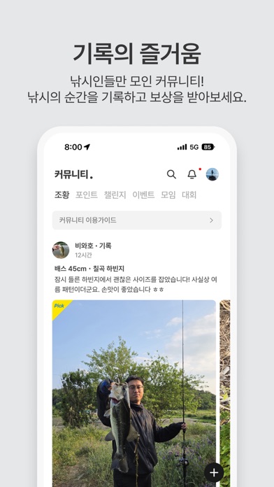 5. -조행기 공유: 실시간 조황 , 물때표, 낚시포인트등 나의 낚시 기록과 낚시 팁을 공유하고, 다른 낚시인들과 소통하며 낚시 동호회 활동을 즐겨보세요.