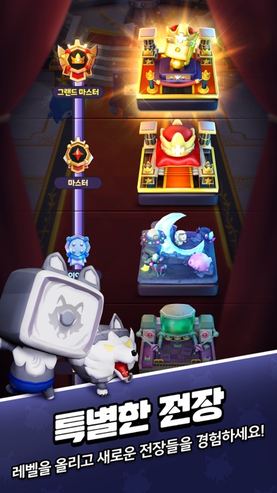1. 완벽한 승리를 굳히거나 짜릿한 역전을 만들기 위해 다이스 카드를 전략적으로 선택하세요! 40종 이상의 다이스 카드 중 현재 전장의 상황에 맞는 카드를 선택하여 시너지를 구성하세요! 다이스 카드의 종류는 티어가 상승하면서 더욱 다양해집니다.