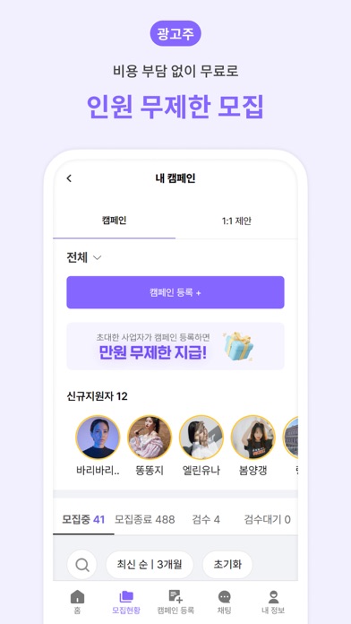1. 하루에도 수백 개의 새로운 체험단 캠페인이 업데이트돼요! 우리 동네 인기 맛집과 카페는 물론, 고급스러운 숙소, 핫한 뷰티 제품, 트렌디한 패션 아이템, 유용한 생활용품까지! 블로그, 인스타그램, 유튜브 모두를 위한 다양한 협찬 기회를 놓치지 마세요.
