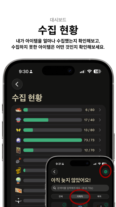 3. 내가 획득한 아이템에 체크를 하면 수집함에 아이템이 쌓이며, 수많은 아이템 중 어떤 아이템을 획득했는지 기록할 수 있어요.