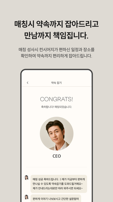 4. 돌싱즈에서 컨시어지가 약속까지 잡아주는 1:1 프라이빗한 만남까지 경험해보신다면 그 어떤 모임이나 서비스에서 보다 좋은 경험을 하실 수 있습니다.