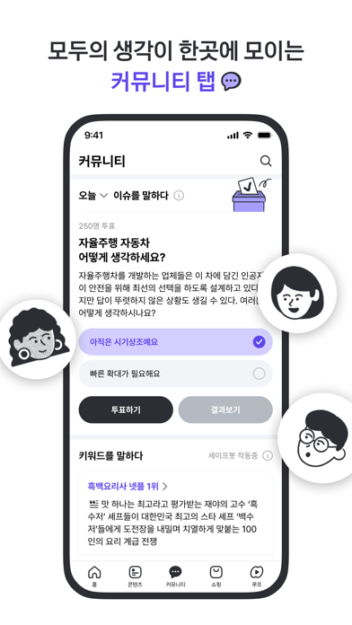 11. [ 커뮤니티 ] 탭에서 이 시각, 모두의 관심사가 모여요.