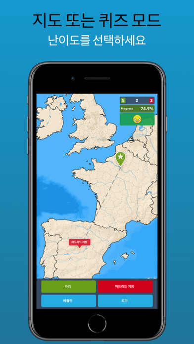 4. 지도에서 위치를 찾아야 하는 대화형 지도 퀴즈와 객관식 퀴즈를 통해 국가, 주 및 수도에 대한 지식을 확장하면서 재미있게 즐길 수 있습니다.