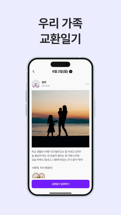 1. ■ 우리 가족 교환일기 : 부모와 자녀가 함께 교환일기를 주고 받으며 몸은 떨어져 있어도 마음만은 함께임을 느낄 수 있게 해주세요.