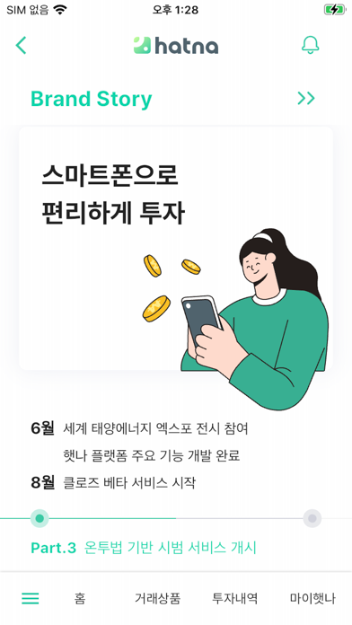 1. 햇나는 태양광 발전소의 증권 토큰 청약, 거래를 체험할 수 있는 모의 투자 서비스입니다.