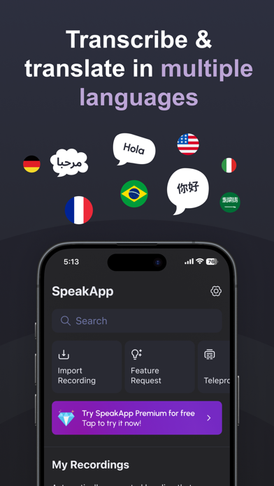 1. • Record Voice Notes and Meetings: Easily record your thoughts and SpeakApp will transcribe them into text in real-time.