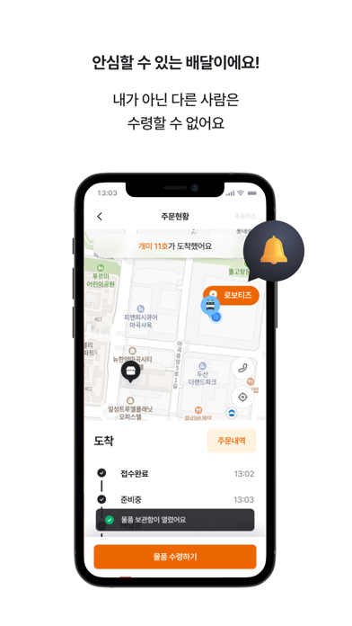 2. 주문한 배달음식을 가지고 달려오는 로봇의 위치를 확인할 수 있어요.