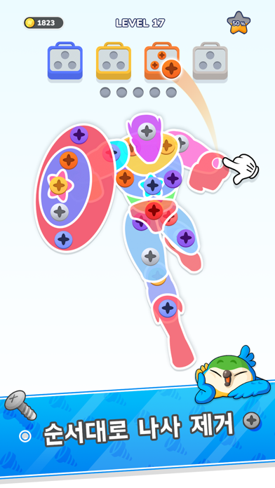 2. 논리 게임에서 가장 어려운 너트와 볼트 나사 핀 잼 퍼즐을 해결하는 데 유용한 도구에 액세스하여 도전에 직면했을 때 "나사를 푸세요!"를 도와줍니다.