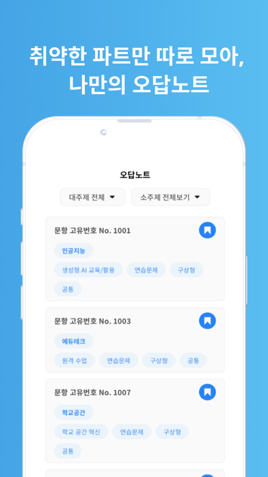 8. 헷갈리는 문항들은 오답노트에 저장해두세요! 나만의 오답노트를 만들어 효율적으로 복습할 수 있습니다.