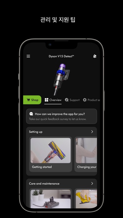 4. Dyson 전문가와 상담하고, 사용 설명서를 살펴보고, 문제 해결 도구를 통해 문제를 해결하세요.